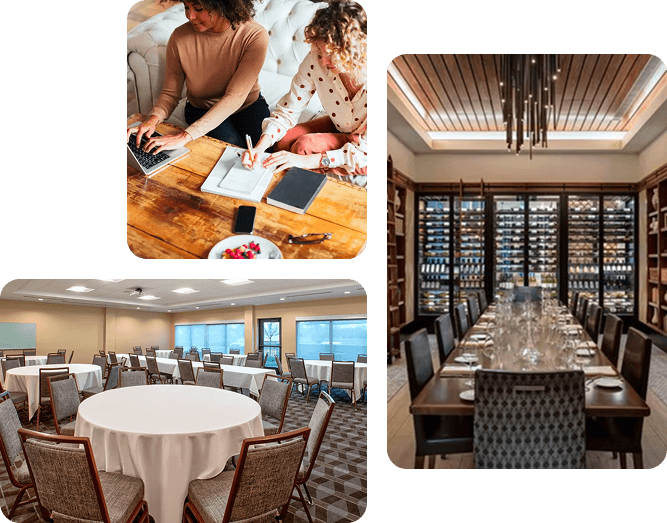 Host your next meeting or celebration in our 3,700 square feet of versatile event space, designed to accommodate everything from productive corporate meetings to unforgettable social gatherings. Whether you’re planning a wedding reception, reunion, shower, or business event, our flexible venue adapts seamlessly to your vision.